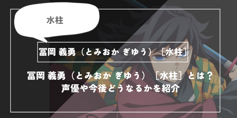 この記事では、そんな寡黙な天才剣士、冨岡義勇の基本プロフィール、彼の魅力的な声を担当する声優の情報、そして、彼の悲しい過去から鬼殺隊の最終決戦で迎える運命の結末(物語でどうなるか)について、詳しく解説していきます。