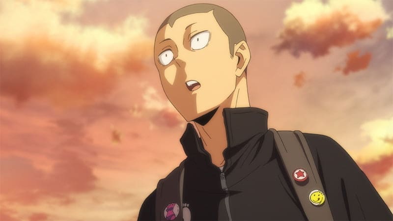 田中龍之介の初登場は、アニメ第1期第1話「終わりと始まり」。中学時代の日向と影山の試合を先輩たちと見守るシーンで姿を見せます。