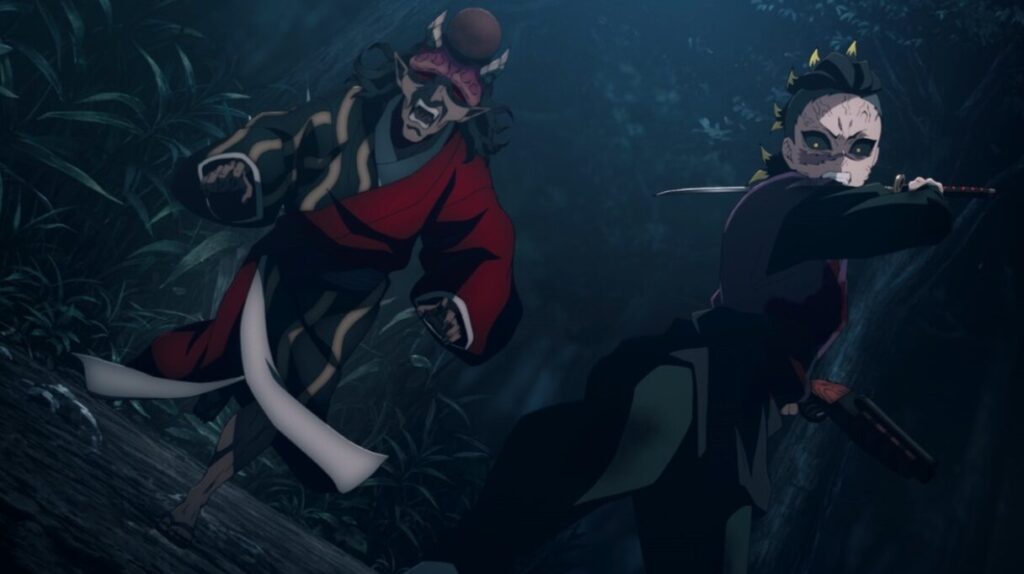 本格的に戦闘を開始し、炭治郎たちの前に現れたのは、同シリーズの第2話「縁壱零式」の終盤から第3話「三百年以上前の刀」にかけてです。